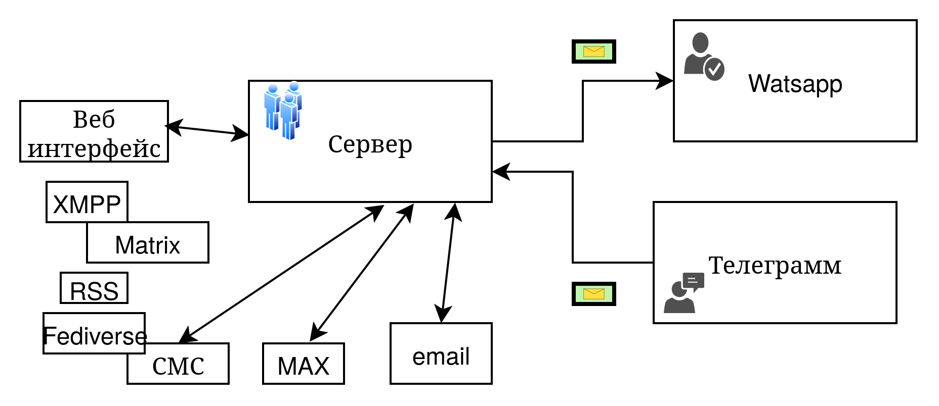 3)Нет расщеплению дискуссий: если я например написал через вацап то ссобщение должно приходить всем пользователям и на сайте и в телеграме, осбуждения не должны расщепляться.