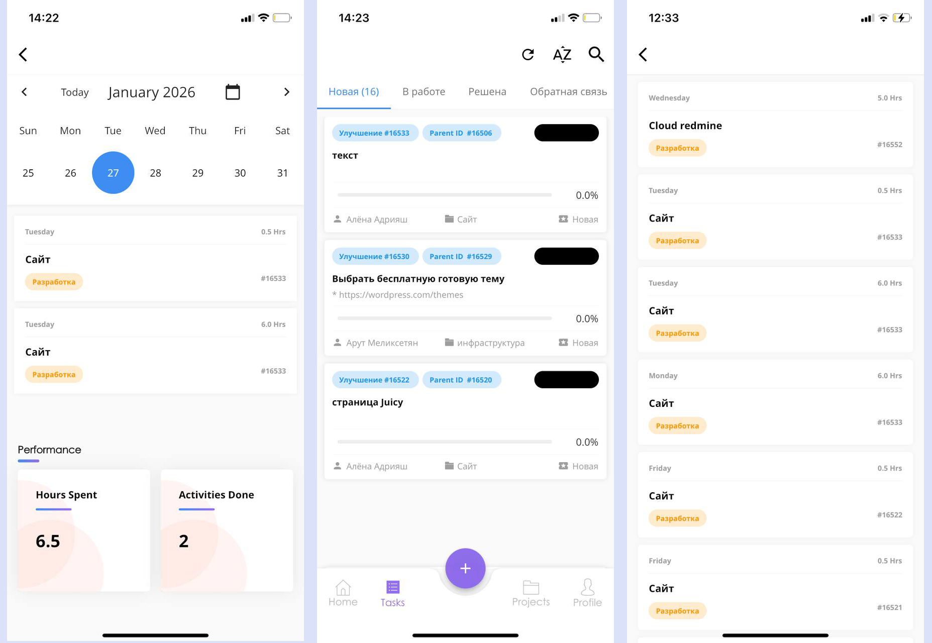 Ошибки: нельзя скопировать текст в описании задачи, ссылки не выделяются, нет возможности удалить задачу. Нет общего списка и поиска задач по всем проектам. Невозможно отследить трудозатратность по дням, не хватает общей статистики.