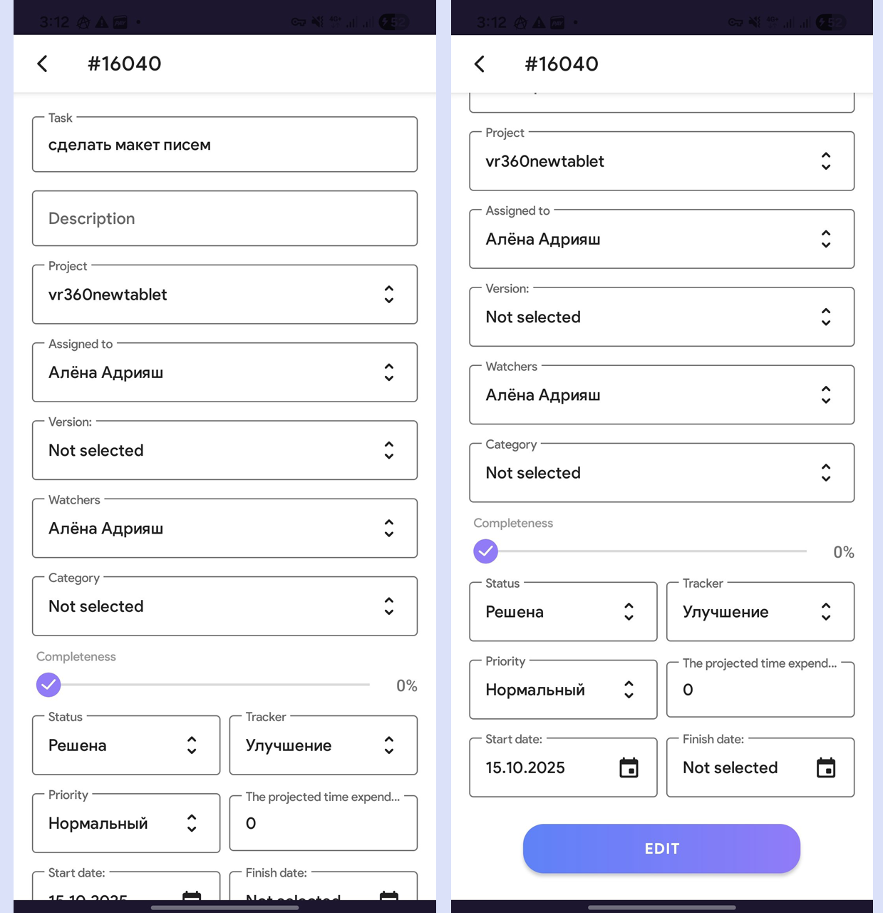 Дальше идет редакция задачи, интерфейс такой же, как у создания новой.